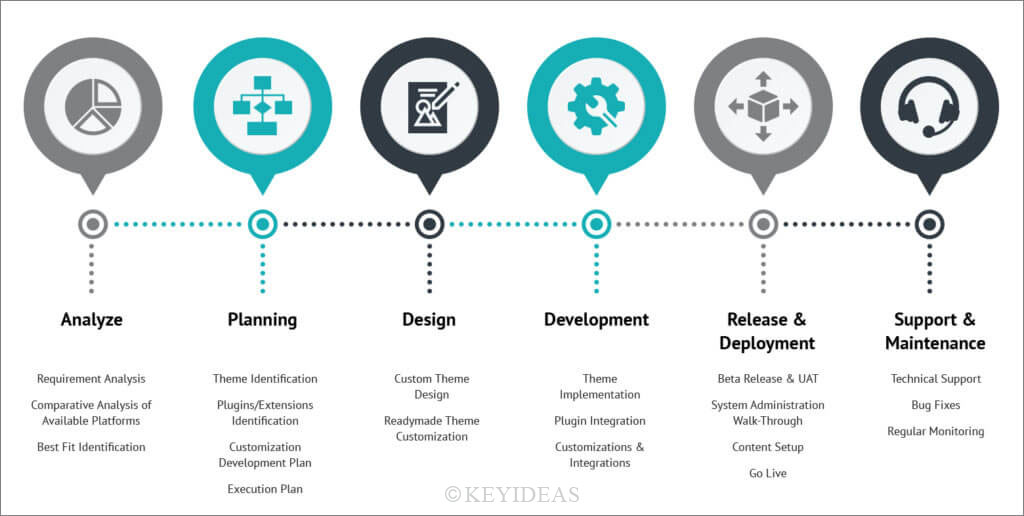 Well, as is apparent from the above-given process flow, we see that it is a six thronged process. Out of these 6 key processes, Analyzing and planning have assumed greater importance mainly because it forms the basis of the remaining stages. Based on what is being planned and analyzed will the product turn out to be the way it has to be!